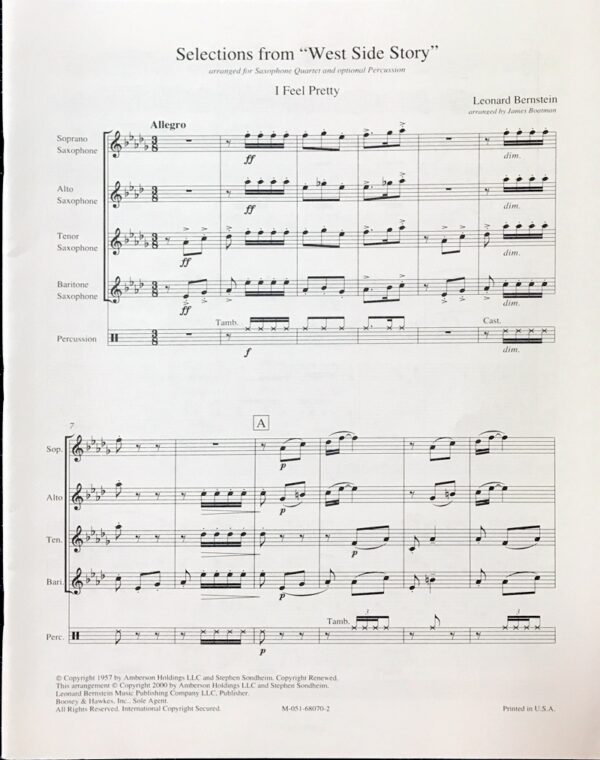 ウエスト・サイド・ストーリー セレクション サックス四重奏 West Side Story Selections for quartet レナード・バーンスタイン