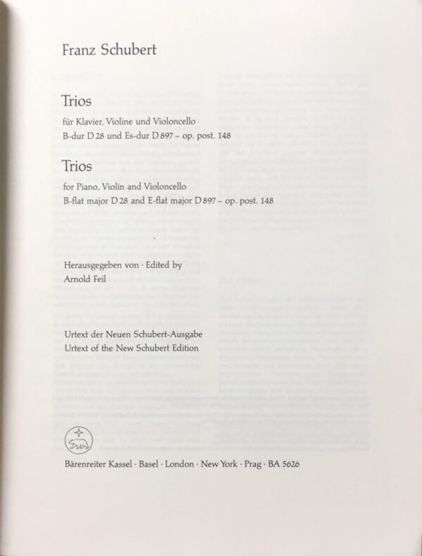 シューベルト ピアノ三重奏曲 変ロ長調 D28 & 変ホ長調 Op.148 D 897 (ピアノ ヴァイオリン チェロ) 輸入楽譜 Schubert Trios 洋書