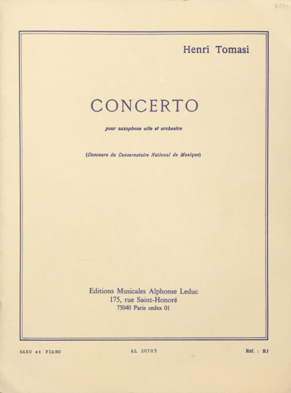 トマジ サクソフォン協奏曲 (アルトサクソフォン+ピアノ) 輸入楽譜 Tomasi Concerto pour Saxophone Alto et Orchestre 洋書