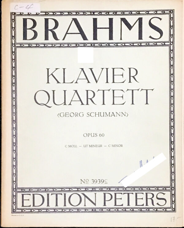 ブラームス ピアノ四重奏曲 Op60 brahms klavierquartett バイオリン/ヴァイオリン/peters/ペータース