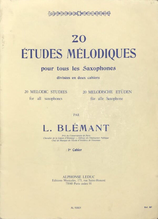 ブレマン サクソフォンのための20の旋律的練習曲 (サクソフォン教本) 輸入楽譜 Bl?mant 20 ?tudes M?lodiques pour tous les Saxophones