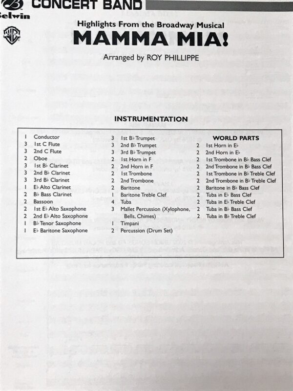 マンマ・ミーア! Mamma Mia! ロイ・フィリップ Roy Phillippe 吹奏楽/ABBA/アバ/ブロードウェイミュージカル/belwin